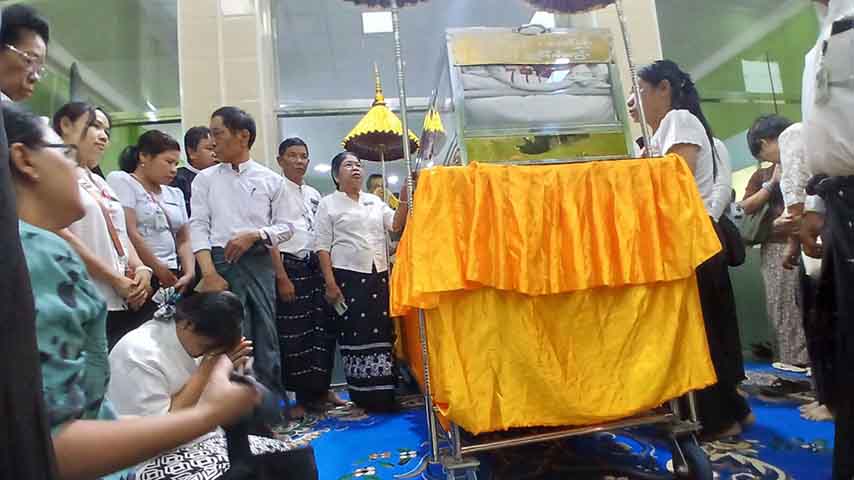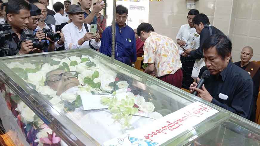 ဆရာကြီး ဂုဏ်ထူးဦးသိန်းနိုင်ရဲ့ စျာပနအခမ်းအနားကို နိုဝင်ဘာ ၂၇ ရက် ဒီနေ့ ရေဝေးသုသာန်မှာ ကျင်းပခဲ့ပြီး ပုဂ္ဂလိကစာသင်ကြားရေးလုပ်ငန်းမှ ဘာသာရပ်အသီးသီးနဲ့ ရုပ်ရှင်စာပေအသိုက်အဝန်းတို့မှ တပည့်အများအပြား တက်ရောက်ခဲ့ကြပါတယ်။