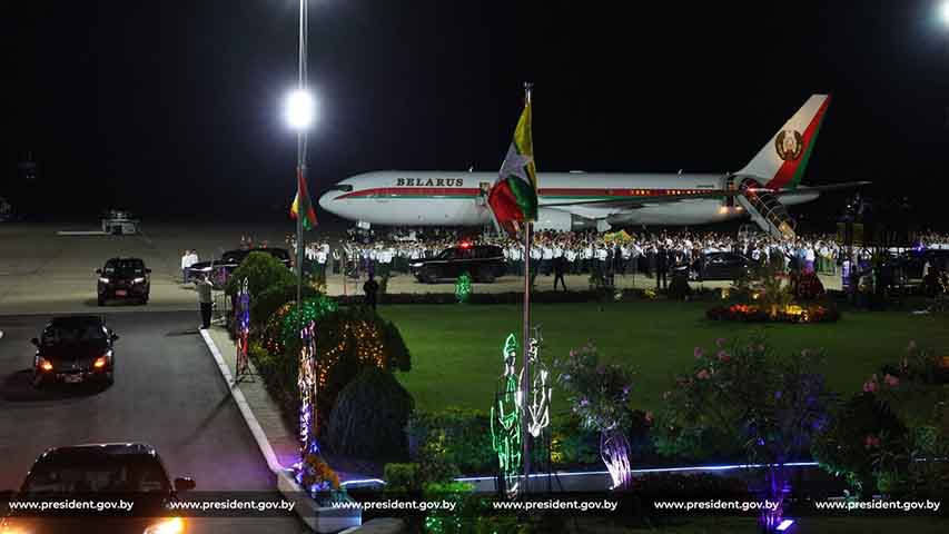ဥရောပက ကုန်းတွင်းပိတ် အာဏာရှင်နိုင်ငံလို့တင်စားကြတဲ့ ဘယ်လာရုစ်နိုင်ငံရဲ့ သမ္မတအလက်ဇန္ဒားလူကာရှန်ကိုဟာ မြန်မာစစ်ခေါင်းဆောင်ရဲ့ ဖိတ်ကြားချက်အရ နေပြည်တော်ကို ရောက်ရှိလာတာဖြစ်ပြီး နေပြည်တော်လေဆိပ်မှာ စစ်ကောင်စီခန့် ဝန်ကြီးချုပ် ညိုစောနဲ့အဖွဲ့က ကြိုဆိုခဲ့ကြပါတယ်။