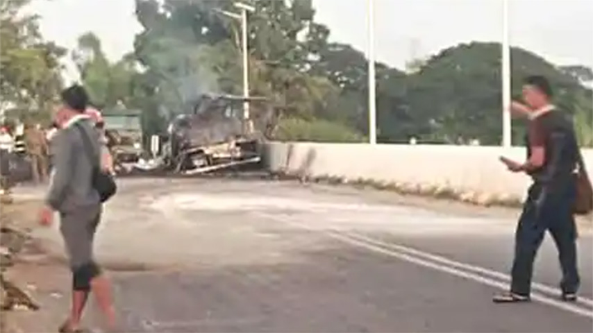 အမည်မဖော်လိုတဲ့ ဒေသခံတယောက်က “ညနေ ၃ နာရီလောက်မှာ တောင်ဘက်ကနေ မောင်းလာပြီး လက်နက်ခဲယမ်းတွေနဲ့ စစ်သားတချို့တင်လာတဲ့ စစ်ကား ၁ စီးက ရွာမြောက်ဘက်နားမှာရှိတဲ့ ချောင်းကူးတံတားအဝင် ဘေးဘောင်ကိုတိုက်မိပြီးတော့ အဲဒီကားပေါ်တင်လာတဲ့ စစ်ပစ္စည်းတွေလည်း ပေါက်ကွဲတဲ့ဟာကွဲ၊ ဘေးလွင့်ကျတဲ့ဟာတွေ ကျကုန်တာဗျ” လို့ ပြောပါတယ်။