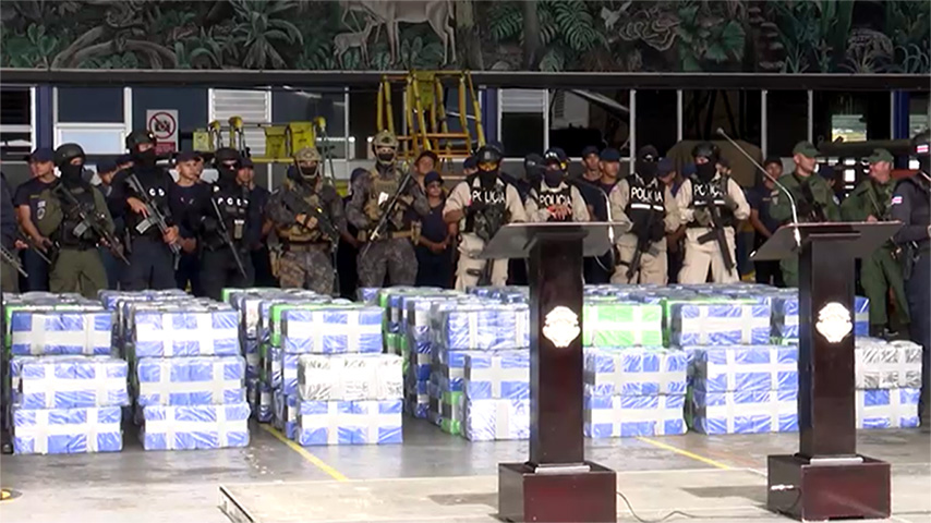 အာဏာပိုင်တွေဟာ သိမ်းဆည်းရမိတဲ့ အထုပ်တွေကို မြို့တော် ဆန်ဟိုဇေးအနီးရှိ ဟွမ်န် ဆန်တာမာရီယာ လေဆိပ်မှာ ပြသခဲ့ပြီး စစ်တပ်နဲ့ ရဲတွေက သယ်ဆောင်လာတဲ့ မူးယစ်ဆေးဝါးတွေကို စောင့်ကြပ်ခဲ့ကြပါတယ်။