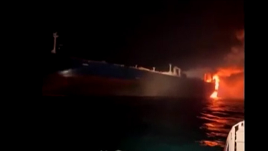 ရေနံတင်သင်္ဘောတစင်းကနေ မီးတောက်တွေနဲ့ မီးခိုးလုံးတွေ ထူထူထပ်ထပ် ထွက်ပေါ်လာနေတဲ့ ဗွီဒီယိုတခုကိုလည်း ထုတ်ပြန်ပြသခဲ့ပါတယ်။