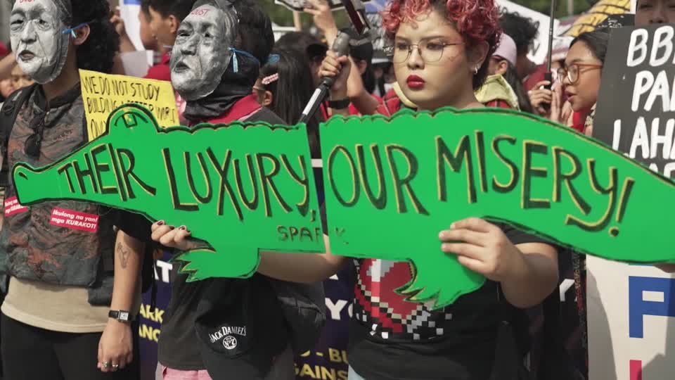 ရေကြီးရေလျှံမှု လျှော့ချရေးစီမံကိန်းတွေအတွက် ရည်ရွယ်ထားတဲ့ အမေရိကန်ဒေါ်လာ သန်းပေါင်းများစွာနဲ့ ညီမျှတဲ့ ပီဆိုငွေ ဘီလီယံပေါင်းများစွာ ပါဝင်ပတ်သက်တဲ့ အဂတိလိုက်စားမှုကို ရှုတ်ချဖို့ ဖိလစ်ပိုင်နိုင်ငံသား ထောင်ပေါင်းများစွာဟာ နိုဝင်ဘာ ၃၀ရက်မှာ မနီလာမြို့တော်မှာ စုဝေး ဆန္ဒပြခဲ့ကြပါတယ်။