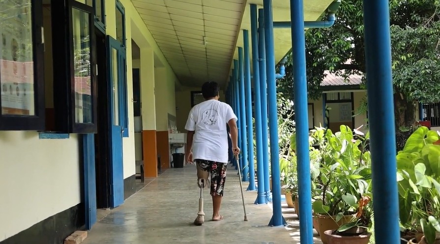 ပေါက်ကွဲမှုကြောင့် ခြေထောက်ပြတ်တောက်ခဲ့ပြီး အခုတော့ သူဟာလည်း မြစ်ကြီးနားက ရုပ်ပိုင်းဆိုင်ရာ ပြန်လည်ထူထောင်ရေးစင်တာမှာ ခြေတုတပ်ဆင်ပြီးလို့ လမ်းလျှောက်ဖို့ သင်ယူနေပါတယ်။