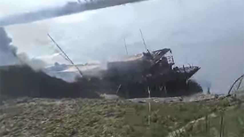 အခုလို လေကြောင်းတိုက်ခိုက်လို့ ချင်းတွင်းမြစ်အတွင်းမှာရှိတဲ့ မော်တော်တစင်း မီးလောင်ပြီး မော်တော်လုပ်သားတွေ ထိခိုက်သေဆုံးခဲ့ပါတယ်။