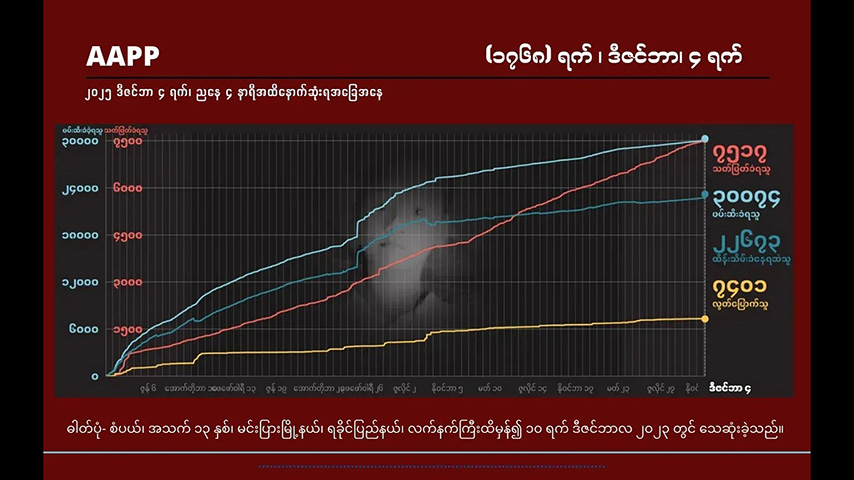 ၂၀၂၅ ခုနှစ် စက်တင်ဘာ ၁ ရက်မှ နိုဝင်ဘာလ ၃၀ ရက်အထိ ၃ လအတွင်းမှာ အာဏာသိမ်းစစ်တပ်ကြောင့် တရက်ကို ပြည်သူ ၃ ယောက်ကျော်နှုန်းလောက် သေဆုံးခဲ့တယ်လို့ နိုင်ငံရေးအကျဉ်းသားများကူညီစောင့်ရှောက်ရေးအသင်း AAPP ရဲ့ ဒီဇင်ဘာ ၄ ရက် ထုတ်ပြန်ချက်အရ သိရပါတယ်။