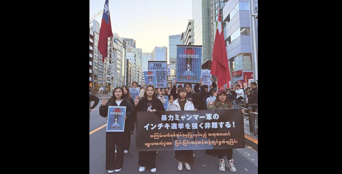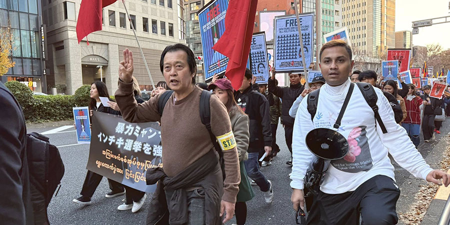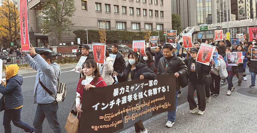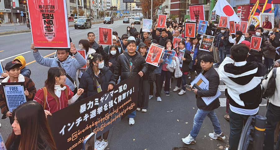 ဒီနေ့လုပ်တဲ့ တိုကျိုနိုင်ငံတကာ လူ့အခွင့်အရေးနေ့လှုပ်ရှားမှုအတွင်းမှာ မြန်မာပြည်သူတွေကို အကြမ်းဖက် သတ်ဖြတ်နှိပ်စက်နေတဲ့ မြန်မာစစ်အုပ်စုက ကျင်းပမယ့်ရွေးကောက်ပွဲဟာ စစ်အာဏာရှင်စနစ် သက်ဆိုးရှည်စေမယ့် အတုအယောင်ရွေးကောက်ပွဲဖြစ်တာမို့ ရွေးကောက်ပွဲနဲ့ ရလဒ်ကို နိုင်ငံအားလုံးက အသိအမှတ်မပြုကြဖို့ တောင်းဆိုခဲ့ပါတယ်။