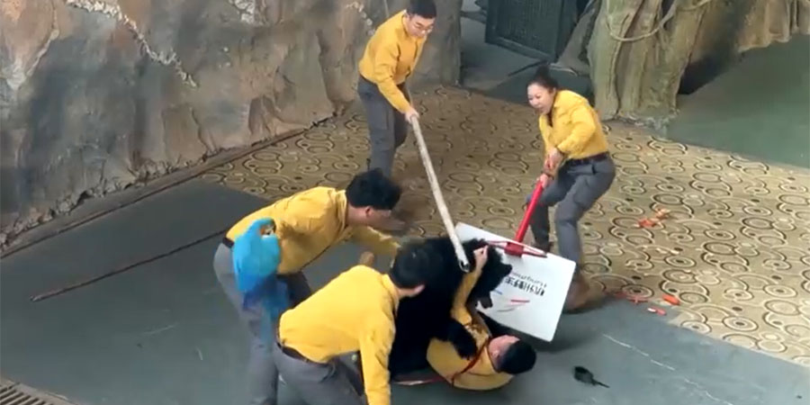 တရုတ်နိုင်ငံ၊ ဟန်ကျိုးမြို့ရှိ တောရိုင်းတိရစ္ဆာန်ဥယျာဉ်တခုဖြစ်တဲ့ ဟန်ကျိုး ဆာဖာရီဥယျာဉ်မှာ တိုက်ရိုက်ဖျော်ဖြေတင်ဆက်မှုတခု လုပ်နေချိန်အတွင်း အာရှဝက်ဝံ အမည်းတကောင်က သူ့ရဲ့ အထိန်းသမားကို တိုက်ခိုက်ခဲ့တဲ့ဖြစ်ရပ် ဖြစ်ပွားခဲ့ပါတယ်။