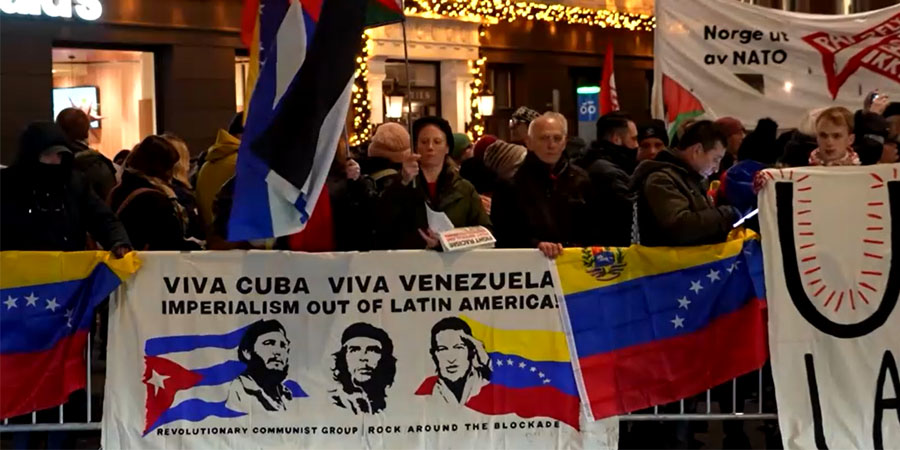 နော်ဝေနိုင်ငံ အော်စလိုမြို့တော်မှာ ဆန္ဒပြသူအများအပြားဟာ ဒီဇင်ဘာ ၁၀ ရက်မှာ ငြိမ်းချမ်းရေး နိုဘယ်ဆုကို လက်ခံရယူဖို့ မျှော်လင့်ထားတဲ့ ဗင်နီဇွဲလား အတိုက်အခံခေါင်းဆောင် မာရီယာ ကိုရီနာ မာချာဒိုကို ဒီဇင်ဘာ ၉ ရက်က ဆန့်ကျင်ဆန္ဒပြခဲ့ကြပါတယ်။