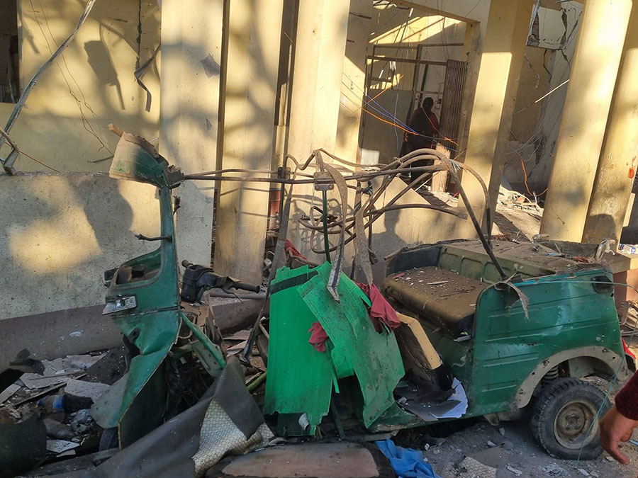 ကူညီဆောင်ရွက်ပေးနေသူ ဆရာဝေဟင်အောင် က “ဗုံးတလုံးကတော့ ဆေးရုံရှေ့အစပ်နားလေးမှာကျပါတယ်။ နောက်တလုံးက လူနာတွေ ဆေးကုနေတဲ့ ပင်မအဆောင်ကို တိုက်ရိုက်ထိမှန်တယ်။ မနက်က ကျနော်တို့သွားကြည့်ပြီး ကူညီပေးနေတဲ့အချိန်မှာ စုစုပေါင်းရှာဖွေရတဲ့ အလောင်းက ၃၃ လောင်းရှိနေပြီ။ ဒီဟာက ဆေးရုံဆိုတော့ လူနာတွေလည်းများတယ်၊ လူနာစောင့်တွေလည်း များတယ်။ နောက်ထပ်သေဆုံးတဲ့ထဲမှာလည်း နောက်ထပ်တိုးလာနိုင်ပါသေးတယ်၊ ဗုံးတိုက်ရိုက်ထိမှန်ပြီးတော့ ကိုယ်အပိုင်းအစတွေ ရှာမရသေးတဲ့ သူတွေပေါ့။ ထိခိုက်ဒဏ်ရာရတဲ့သူမှာလည်း စိုးရိမ်ရနိုင်တဲ့သူတွေအများကြီး ပါပါတယ်” လို့ ပြောပါတယ်။