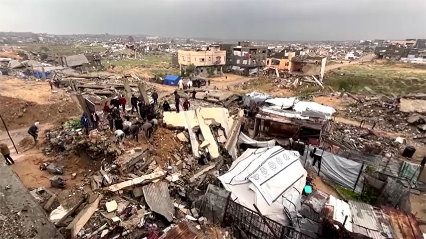ဂါဇာကမ်းမြောင်ဒေသ မြောက်ပိုင်းရှိ ဘိတ်လာဟိယာမြို့မှာ အရပ်ဘက်ကာကွယ်ရေးအဖွဲ့ဝင်တွေ ဟာ မိုးသည်းထန်စွာရွာသွန်းမှုကြောင့် ပြိုကျသွားတဲ့ နေအိမ်နေရာမှာ အသက်ရှင် ကျန်နေ နိုင်သေးသူတွေကို ကယ်ဆယ်နိုင်ဖို့ ဒီဇင်ဘာ ၁၂ ရက်မှာ ရှာဖွေနေကြပါတယ်။