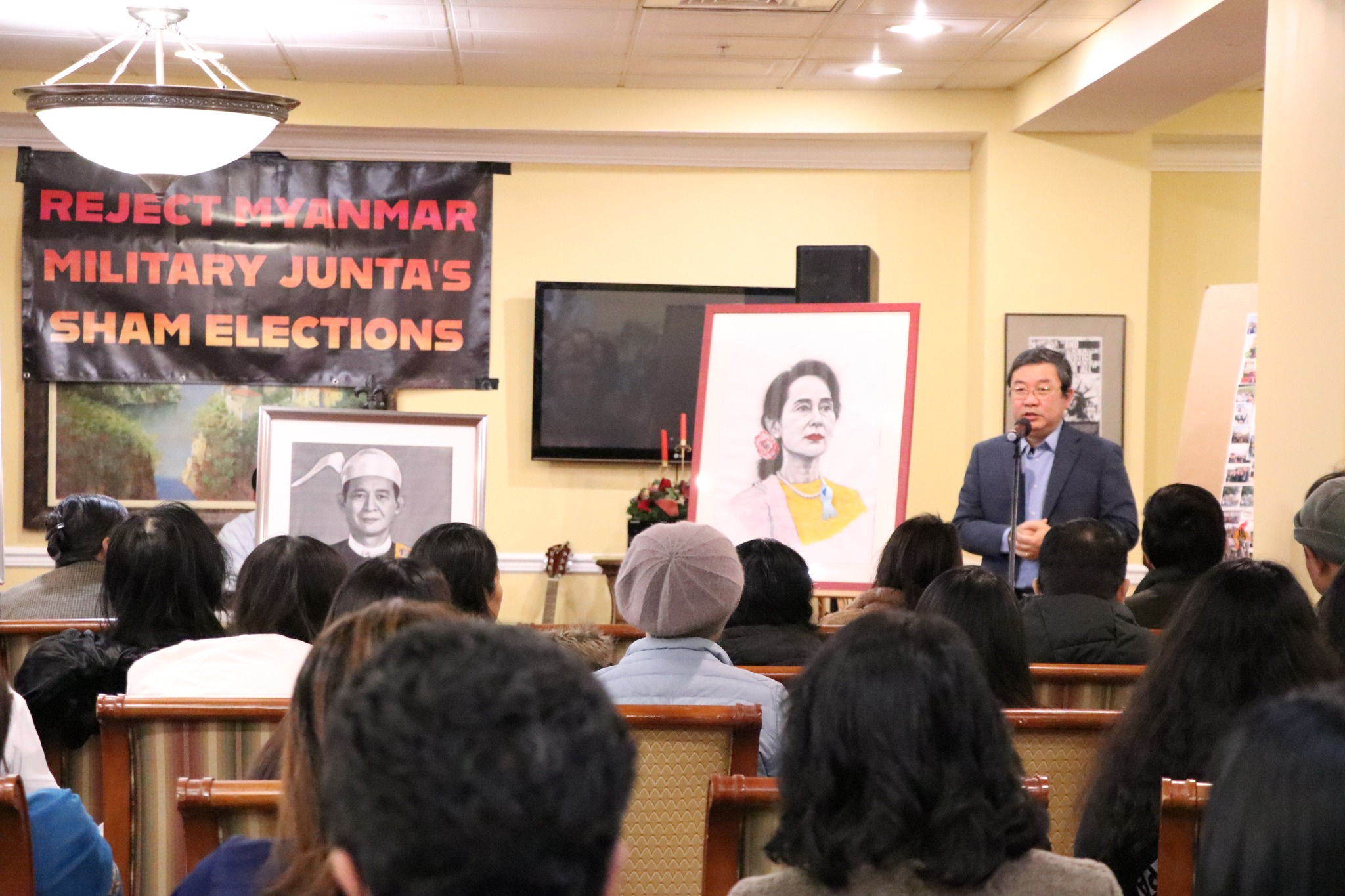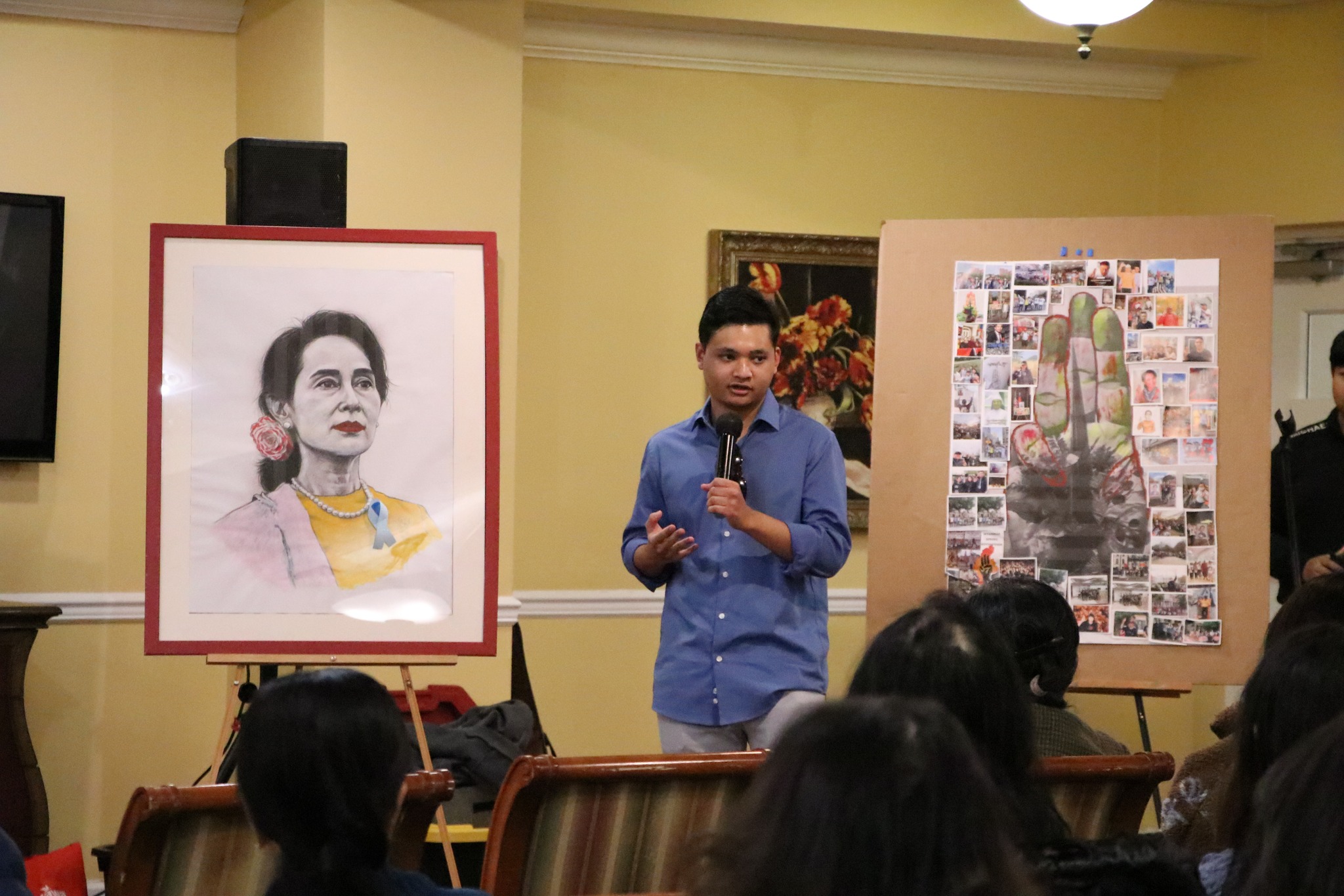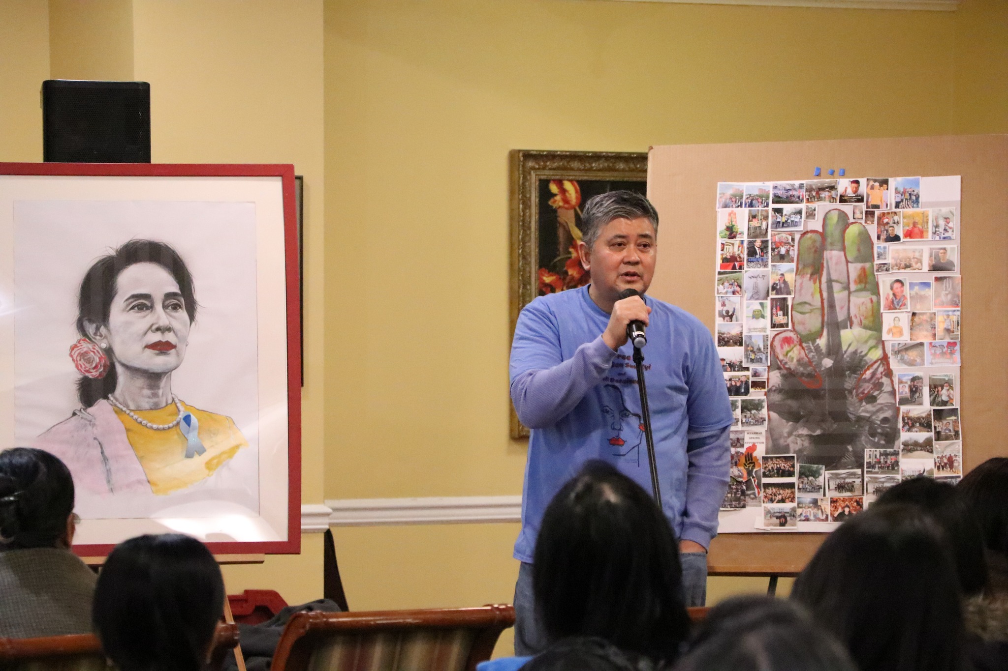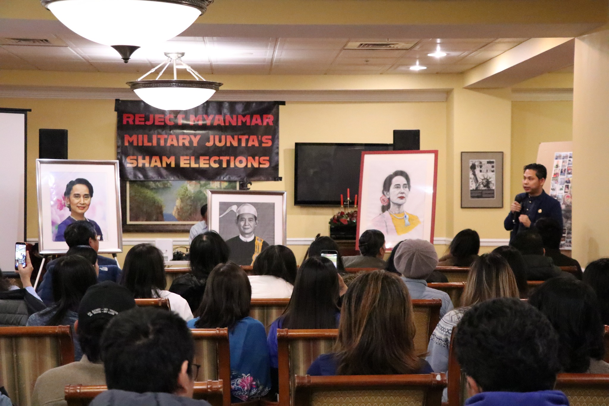 Save Myanmar-USA အဖွဲ့မှ ဦးရင်အေး “ဒီနေ့ပွဲကနေ ကျနော်တို့ ကျယ်ကျယ်လောင်လောင် တောင်းဆိုကြမှာကတော့ ကင်မ်လည်း ပြောသွားပါတယ်၊ Freedom for Her, Freedom for All နိုင်ငံရေးအကျဉ်းသားတွေအားလုံးကို ခြွင်းချက်မရှိ လွှတ်ပေးရေးကို တခဲနက်တည်း တောင်းဆိုကြမှာ ဖြစ်ပါတယ်။ ဒါ့အပြင် လာမဲ့ ၂၈ ရက်နေ့မှာ စစ်ကောင်စီက ပြုလုပ်မဲ့ အတုအယောင်ရွေးကောက်ပွဲက ဘယ်လိုမှ ကျနော်တို့ပြည်သူတွေ လက်ခံနိုင်စရာ အကြောင်းမရှိဘူးဆိုတာကို ကျနော်တို့ ထုတ်ဖော်ပြသတဲ့ပွဲ ဖြစ်ပါတယ်။ ဒီရည်ရွယ်ချက် ၂ ခုနဲ့ ကျနော်တို့ လုပ်တာပါ”လို့ ပြောပါတယ်။