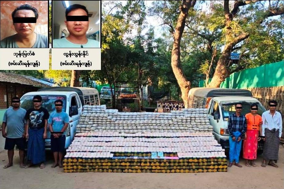 ပြီးတော့ ခြံဝင်းထဲမှာ ရပ်ထားတဲ့ Hyundai Porter II ကားနဲ့အတူ မိုးမင်းစံနဲ့ မျိုးသူရ တို့ကို ဘိန်းဖြူ ၂၅ ဒသမ ၇၄ ကီလို၊ စိတ်ကြွရူးသွပ်ဆေးပြား ၁၃ ဒသမ ၆၅ သိန်းနဲ့၊ TownAce Light Truck ကားနဲ့အတူ ချစ်ကိုကိုနိုင်နဲ့ ခင်မောင်ဇော်တို့ကို ဘိန်းဖြူ ၁၃ ဒသမ ၈၆ ကီလို၊ စိတ်ကြွရူးသွပ်ဆေးပြား ၃၇ ဒသမ ၀၅ သိန်းနဲ့ ဖမ်းဆီးရမိခဲ့တယ်လို့ ဆိုပါတယ်။