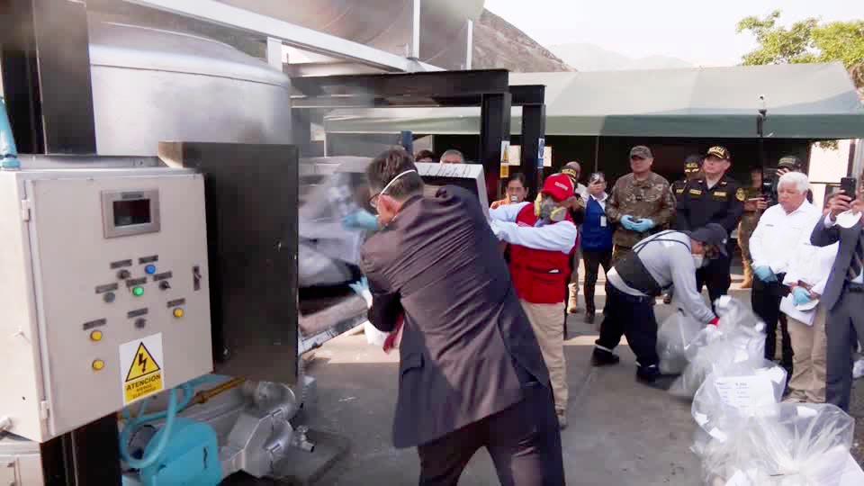 ပီရူးအမျိုးသား ရဲတပ်ဖွဲ့ရဲ့ ပြည်လုံးကျွတ် မူးယစ်တိုက်ဖျက်မှု စစ်ဆင်ရေးတွေအတွင်း သိမ်းဆည်းရမိတဲ့ မူးယစ်ဆေးဝါးတွေကို ရဲတပ်ဖွဲ့ အထူးစစ်ဆင်ရေး ညွှန်ကြားရေးမှူးရုံးရဲ့ ဌာနချုပ်မှာ မီးရှို့ခဲ့တာလို့ ဝန်ကြီးဌာနက ပြောပါတယ်။