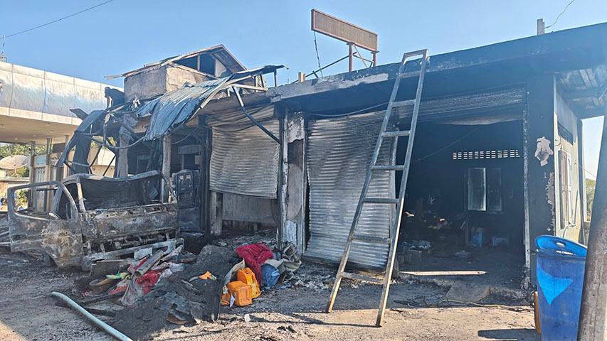 “ဆီဖြည့်နေရင်း ဖြစ်တာ။ ဆိုင်တခြမ်းလောင်သွားတာ။ ကား ၄ စီး ပါသွားတယ်။”