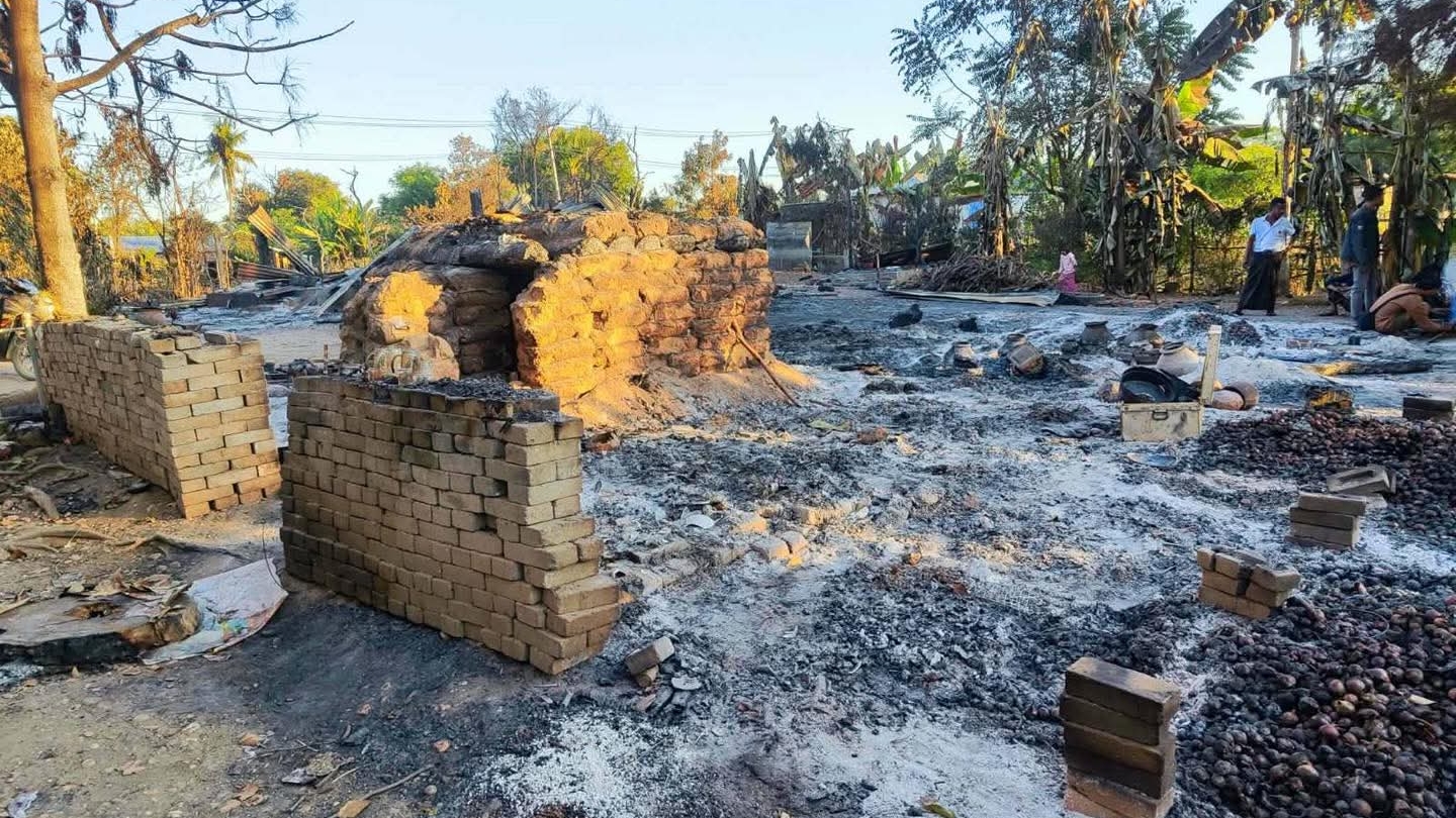 စစ်ကောင်စီစစ်ကြောင်းက မီးရှို့လို့ ကျောက်မှော်ကျေးရွာက လူနေအိမ် ၂၇ လုံး၊ ကျောက်ကုန်းကျေးရွာက လူနေအိမ် ၆၅ လုံး၊ နှောပင်ကျေးရွာက လူနေအိမ် ၃၆ လုံး၊ ကျွန်းပေါ်ကျေးရွာက လူနေအိမ် ၃၄ လုံး၊ အင်းဘက်ကျေးရွာက လူနေအိမ် ၄၉ လုံး၊ ကြက်လျှာကျေးရွာက လူနေအိမ် ၁၆ လုံးနဲ့ ပတိန်ပြင်ကျေးရွာက ၂ လုံးတို့ ဖြစ်ကြတယ်လို့ သူက ဆက်ပြောပါတယ်။