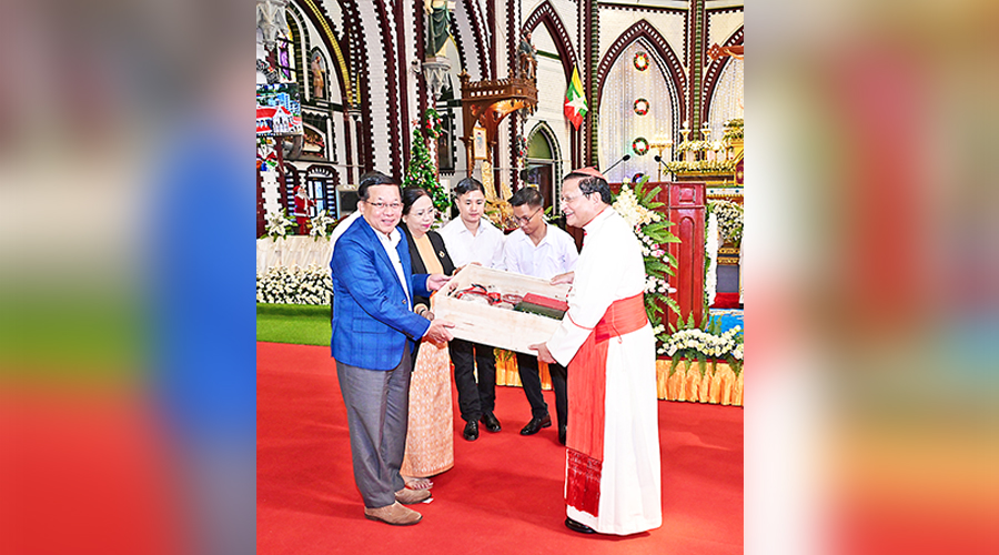 ပြီးခဲ့တဲ့ရက်က ရန်ကုန်မြို့၊ ဗိုလ်တထောင်မြို့နယ်က စိန့်မေရီကာသီဒြယ် ကက်သလစ် ဘုရားကျောင်းမှာ ကာဒီနယ်လ် ချားလ်စ်မောင်ဘိုက ဦးဆောင်ပြုလုပ်တဲ့ ခရစ်တော် မွေးနေ့ (ခရစ္စမတ်) ကျေးဇူးတော် ချီးမွမ်းခြင်းအခမ်းအနားကိုတော့ စစ်ခေါင်းဆောင် ဗိုလ်ချုပ်မှူးကြီးမင်းအောင်လှိုင်နဲ့ ဇနီးတို့ တက်ရောက်ခဲ့ကြသလို အခမ်းအနား တက်ရောက်လာတဲ့ စစ်ခေါင်းဆောင်ကို ဆရာတော်က ကြိုဆိုနှုတ်ဆက်ခဲ့ပြီး တက်ရောက် လာသူတွေကို ဓမ္မတေးသီချင်းကျူး ဧချင်း “အိုသာယာသော မြန်မာပြည်တော်ကျူး” ဓမ္မသီချင်း နဲ့ စုပေါင်းသီဆိုခဲ့ကြတယ်လို့ သိရပါတယ်။