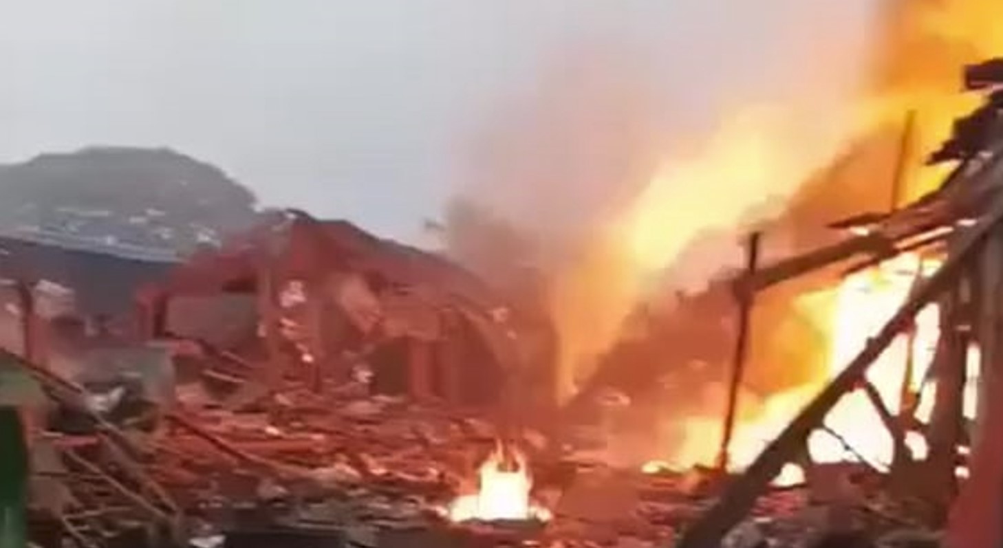မနေ့ မနက်အစောပိုင်းက စစ်တပ်က ဂျက်တိုက်လေယာဉ်နဲ့ လေကြောင်းတိုက်ခိုက်ခဲ့ တာကြောင့် ဗန်းမောက်မြို့မဈေးထဲ ကျရောက်ပေါက်ကွဲခဲ့ပြီး ဈေးဆိုင်ခန်းပေါင်း ၁၀၀ ကျော် မီးလောင်ပျက်စီးသွားတယ်လို့ နယ်မြေခံ တော်လှန်ရေးရဲဘော်တယောက်က ပြောပါတယ်။