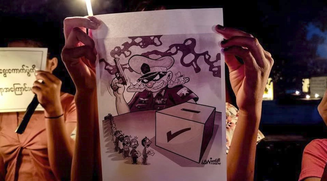 လက်ရှိ မြန်မာနိုင်ငံမှာ နိုင်ငံရေး ခေါင်းဆောင်တွေ (ဒေါ်အောင်ဆန်းစုကြည်၊ ဦးဝင်းမြင့် အပါအဝင်) ထောင်သွင်း အကျဉ်းချခံထားရပါတယ်။ ပြည်သူတွေဟာ စစ်တပ်ရဲ့ ဖမ်းဆီးသတ်ဖြတ်မှုတွေကို နေ့စဉ် ကြုံတွေ့နေရတယ်။ “ရွေးကောက်ပွဲ ကာကွယ်တားဆီးရေး ဥပဒေ” ကြောင့် ရွေးကောက်ပွဲကို ဝေဖန်ရုံ၊ မဲမပေးဘဲ နေရုံနဲ့တောင် ထောင်ကျနိုင်၊ သေဒဏ်ထိ ပေးနိုင်တဲ့ အခြေအနေမှာ “လွတ်လပ်မှု” ဆိုတာ လုံးဝ မရှိနိုင်ပါဘူး။ ဒါဟာ သေနတ်ပြပြီး မဲထည့်ခိုင်းတာနဲ့ အတူတူပါပဲ။