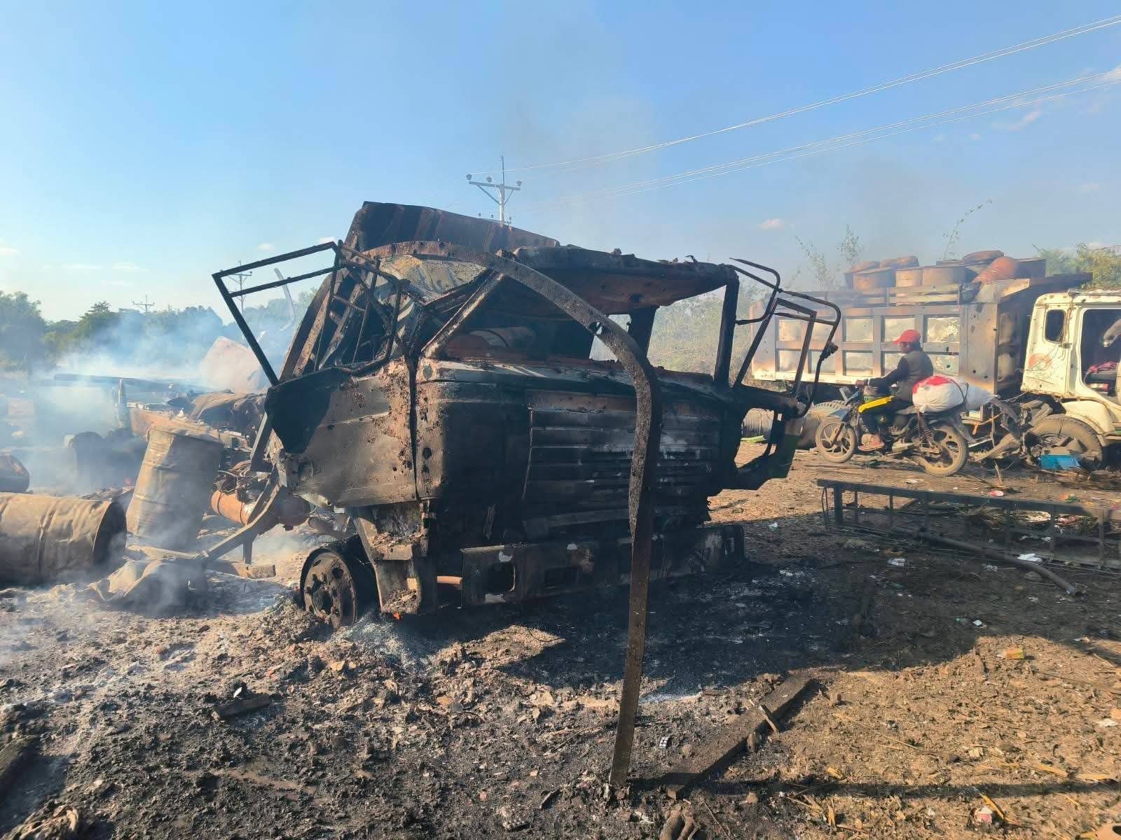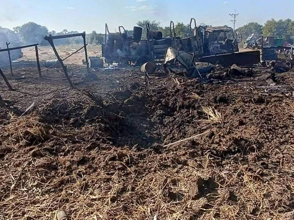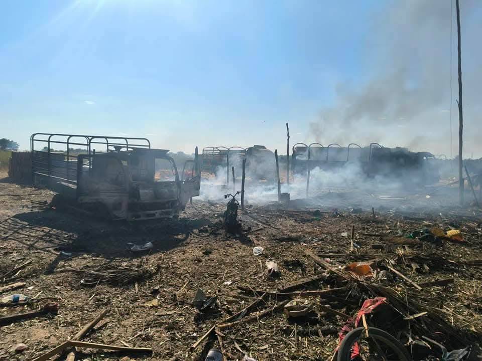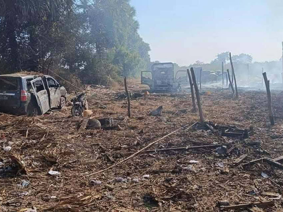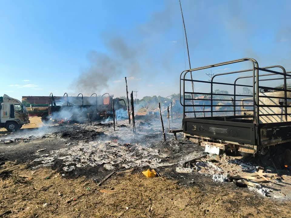 စစ်တပ်က တိုက်ခိုက်လို့ Star link ဆိုင်၊ ထမင်းဆိုင်တွေ၊ ခရီးသွားကား၊ ကုန်ကားနဲ့ ဆီသယ်ကားတွေ ထိခိုက်ခဲ့ပြီး ကား ၉ စီး မီးလောင်ပျက်စီးခဲ့တယ်လို့ ဆိုပါတယ်။