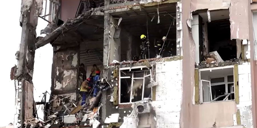 အဆောက်အအုံထဲကို ဒရုန်းတစင်း ပျံသန်းဝင်ရောက်ပြီးတဲ့နောက် ပျက်စီးနေတဲ့ လူနေတိုက်ခန်းက အပျက်အစီးတွေကို ရှင်းလင်းဖို့ အရေးပေါ်အဖွဲ့တွေက အစောပိုင်းမှာ ဆောင်ရွက်ခဲ့တယ်လို့ မျက်မြင်သက်သေတယောက်က ပြောပါတယ်။