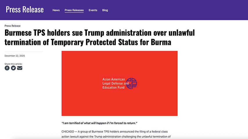 မြန်မာနိုင်ငံသားတွေရဲ့ ယာယီခိုလှုံခွင့် TPS ကို မဖျက်သိမ်းဘဲ ခွင့်ပြုချက်ပြန်ပေးဖို့ ထရမ့်ပ်အစိုးရကို မြန်မာနိုင်ငံသားတွေကိုယ်စား အာရှ-အမေရိကဆိုင်ရာ အဖွဲ့အစည်း ၂ ခုက တရားစွဲဆိုထားပါတယ်။