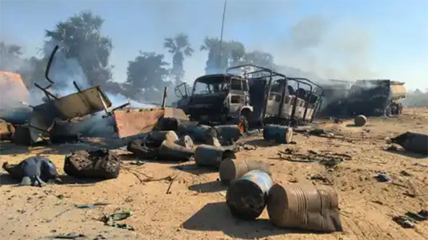 ဗုံးလာကြဲတဲ့ အဆိုပါဂျက်တိုက်လေယာဥ်ဟာ တံတားဦးလေတပ်စခန်းကနေ တက်လာတာလို့ တော်လှန်ရေးတပ်ဖွဲ့ဘက်က ပြောပါတယ်။