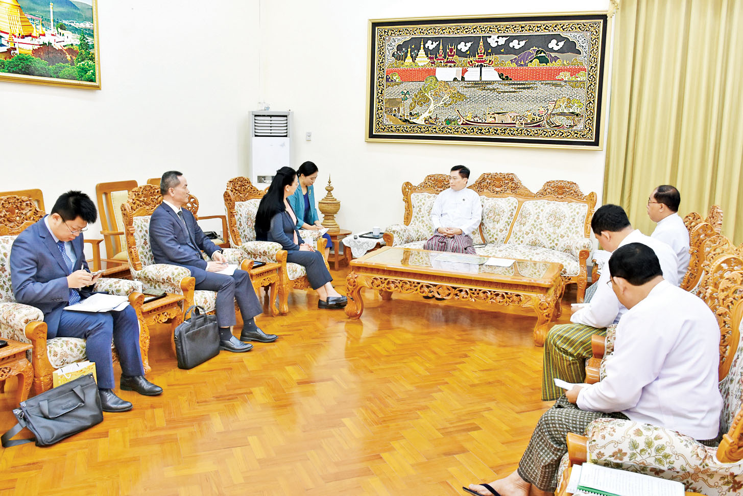 ဒါ့အပြင် တရုတ်နိုင်ငံကို တင်ပို့တဲ့ မြန်မာ့ပိုကုန်တွေ အရည်အသွေး စံချိန်စံနှုန်း ပြည့်မီစေရေးအတွက် လိုအပ်တဲ့ စက်ကိရိယာနဲ့ နည်းပညာဆိုင်ရာ ပူးပေါင်းဆောင်ရွက်မှုတွေ၊ နှစ်နိုင်ငံ နယ်စပ်ဒေသနေ ပြည်သူတွေရဲ့ အကျိုးစီးပွားဖြစ်ထွန်းရေးအတွက် ၂ နိုင်ငံ ပူးပေါင်းဆောင်ရွက်နိုင်မဲ့ အလားအလာတွေကိုလည်း ဆွေးနွေးခဲ့ကြတယ်လို့ သိရပါတယ်။