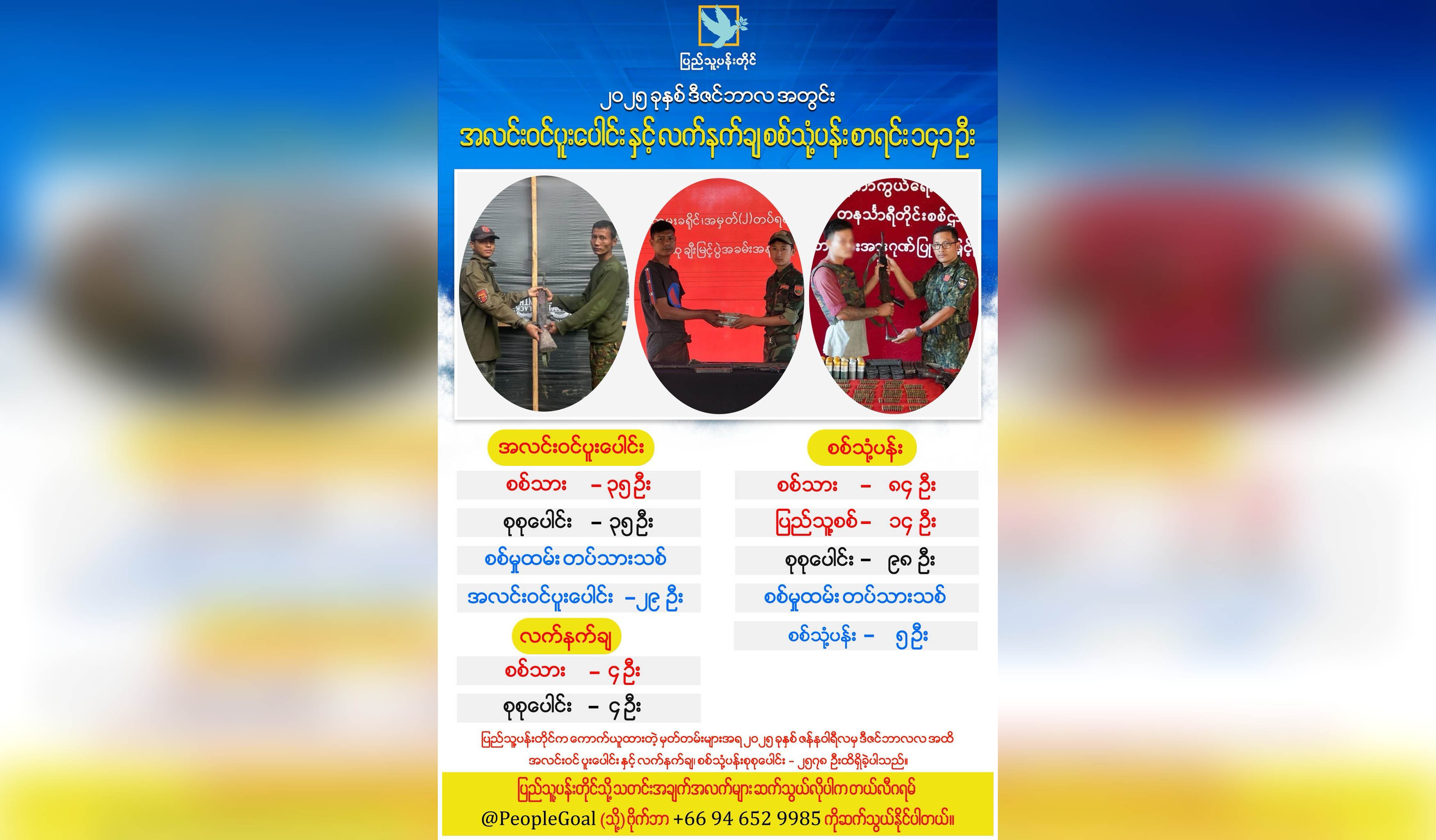 ပြည်သူ့ပန်းတိုင်က ကောက်ယူထားတဲ့ မှတ်တမ်းတွေအရ ၂၀၂၅ ခုနှစ် ဇန်နဝါရီလကနေ ဒီဇင်ဘာလအထိ တနှစ်တာအတွင်းမှာ အလင်းဝင်ပူးပေါင်းနဲ့ လက်နက်ချ၊ စစ်သုံ့ပန်း စုစုပေါင်း ၂,၅၇၈ ယောက်ထိ ရှိခဲ့တယ်လို့လည်း သိရပါတယ်။