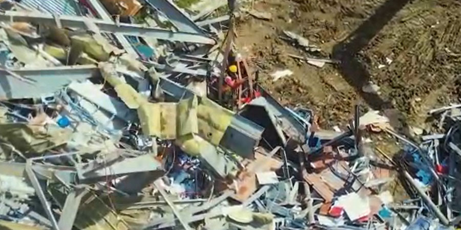 ကယ်ဆယ်ရေးအဖွဲ့တွေဟာ အက်စီတလင်းမီးတိုင်တွေ၊ ဘက်ဟိုး မြေတူးစက်တွေနဲ့ တန် ၅၀ ကရိန်းတို့ကို အသုံးပြုကာ အပျက်အစီးတွေကို ဂရုတစိုက် ဖယ်ရှားနေပြီး မီသိန်းနဲ့ ကာဗွန်ဓာတ်ငွေ့တွေကို ဆက်လက်ထုတ်လွှတ်နေတဲ့ မတည်ငြိမ်တဲ့ အမှိုက်ပုံတွေကြောင့် ဖြစ်ပေါ်လာတဲ့ အန္တရာယ်တွေကို စီမံခန့်ခွဲနေရကြောင်း အာဏာပိုင်တွေက ပြောကြားခဲ့ပါတယ်။