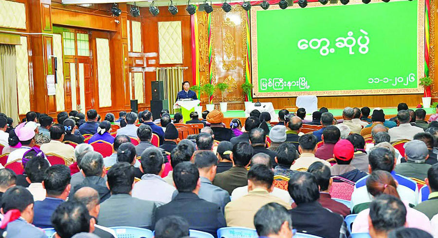 ဇန်နဝါရီ ၁၀ ရက်က ကချင်ပြည်နယ်နေ့ ပြုလုပ်စဥ် စစ်ကောင်စီခန့် သမ္မတရုံးဝန်ကြီး ဦးတင်အောင်စန်းက မြစ်ကြီးနားမှာ ဌာနဆိုင်ရာတွေ၊ မြို့မိမြို့ဖတွေ၊ ဘာသာရေးအသင်းအဖွဲ့တွေနဲ့ တွေ့ဆုံစဥ် ပြောဆိုခဲ့တာပါ။