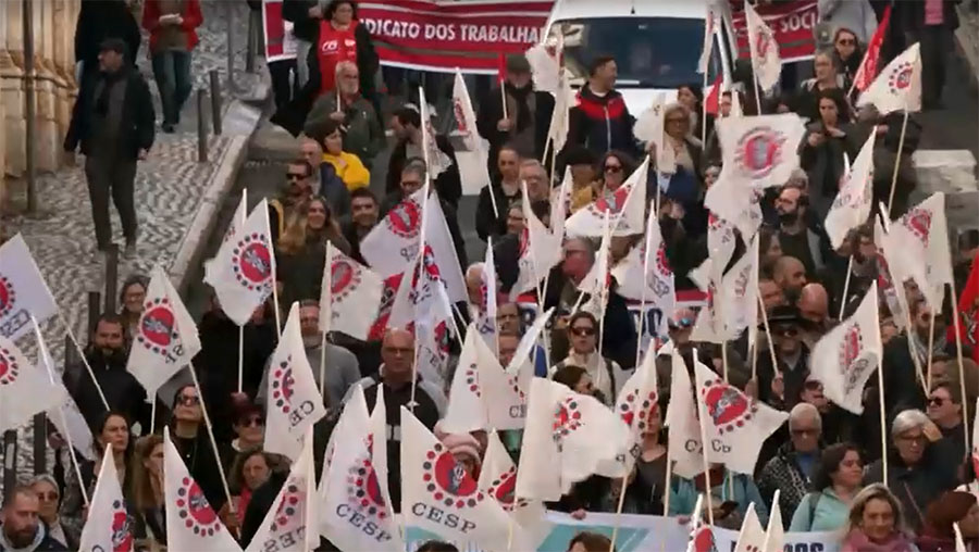 ပေါ်တူဂီနိုင်ငံတဝန်းက မြို့အသီးသီးမှာ အလုပ်သမားသမဂ္ဂတွေ ဇန်နဝါရီ ၁၃ ရက်က စုဝေးခဲ့ကြပြီး သူတို့ရဲ့ အခွင့်အရေးတွေကို ထိခိုက်စေလိမ့်မယ်ဆိုတဲ့ အလုပ်သမား ပြုပြင်ပြောင်းလဲရေးဆိုင်ရာ မူဝါဒကို ဆန့်ကျင် ဆန္ဒပြခဲ့ကြပါတယ်။