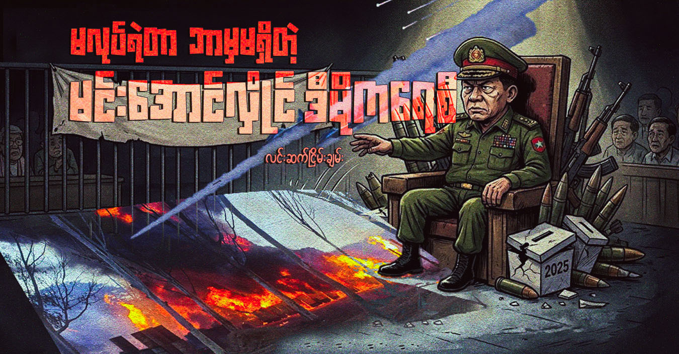 ဦးသိန်းညွန့်နဲ့ ဦးခင်မောင်ဆွေတို့လို မင်းအောင်လှိုင် ထားရာနေ စေရာသွားဘဝနဲ့ အာမချောင်ဘဲ နေနိုင်ရင် နေ။ မနေနိုင်ရင်တော့ သက်သက်ခိုင် ဖြစ်သွားလိမ့်မယ်။ ထောင်ထဲဝင်သွားတော့လည်း စစ်အုပ်စု အာဏာတည်မြဲရေးအတွက် ထမ်းမခဲ့တဲ့ ခြံခုန်ကူးသူတွေကို နည်းတောင်နည်းသေးတယ်လို့ပဲ ပြည်သူတွေ ကောင်းချီးပေးကြမှာလည်း မမေ့လျော့ကြနဲ့။ မင်းအောင်လှိုင်ကတော့ မလုပ်ရဲတာ ဘာမှမရှိဘူးလို့ ဆက်လက် သက်သေပြပါလိမ့်မယ်။