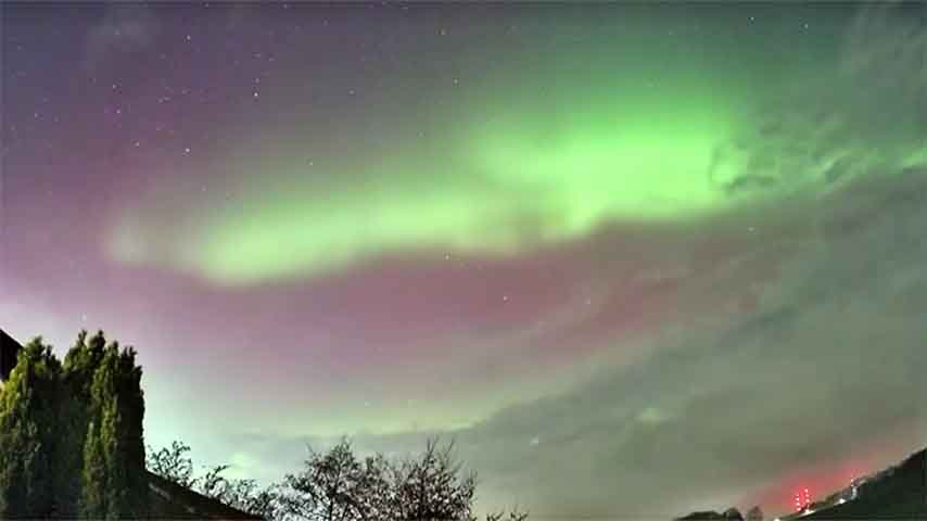 အစိမ်းရောင်နဲ့ ပန်းရောင်တောက်တောက် အလင်းတန်းတွေဟာ မြောက်ဝင်ရိုးစွန်းမှာသာ မြင်တွေ့ရလေ့ရှိတဲ့ ရှားပါးတဲ့ ညကောင်းကင်ကို လင်းလက်စေတဲ့ အလင်းတန်းမြင်ကွင်း တခုပါ။