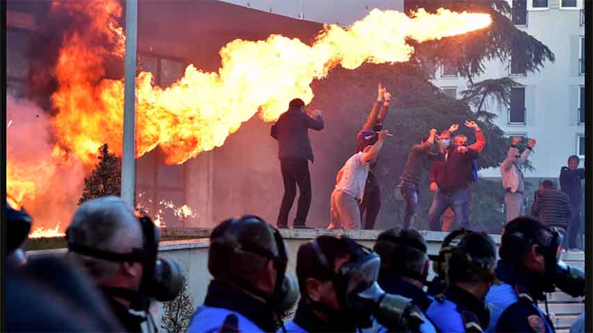 အယ်လ်ဘေးနီးယားနိုင်ငံမှာ အစိုးရဆန့်ကျင်ရေး ဆန္ဒပြပွဲတရပ်အတွင်း အယ်လ်ဘေးနီးယား နိုင်ငံသား ထောင်ပေါင်းများစွာဟာ မြို့တော် တီရာနာမှာ ဇန်နဝါရီ ၂၄ ရက်က စုဝေးခဲ့ကြပါတယ်။