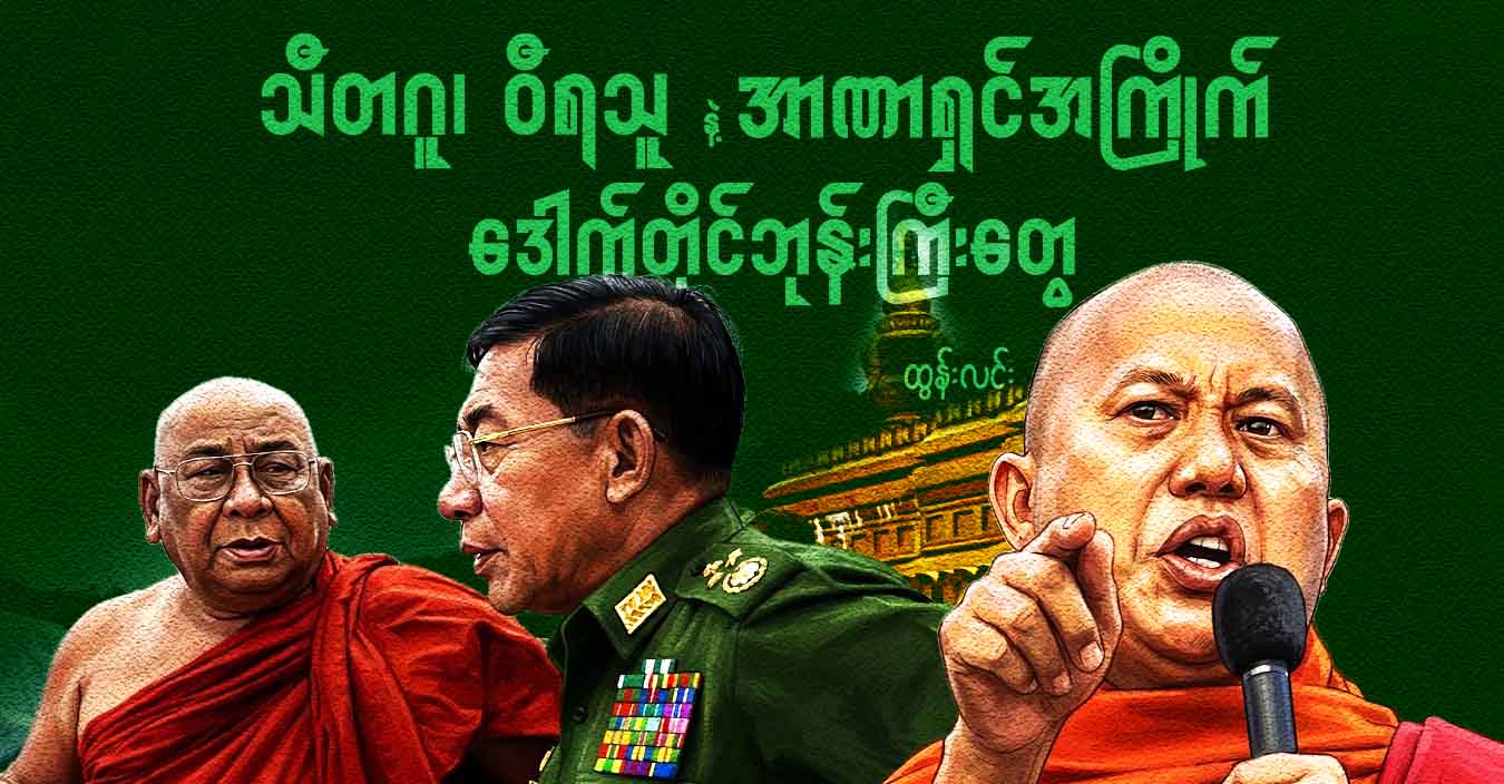 သံဃမဟာနာယကဘုန်းကြီးတွေဟာ မြို့တွေရွာတွေက သင်္ကန်းအရေခြုံ တောင်းရမ်း သောက်စား၊ အမြင်မတင့်တယ်တာတွေကို စစ်မေးချေချွတ်နေပေမဲ့ သင်္ကန်းဝတ်ပြီး သေနတ်ကိုင်ထားသူတွေနဲ့ ပြည်သူသတ် စစ်ခေါင်းဆောင်တွေနဲ့ အပြန်အလှန်ဦးညွှတ်နေကြတဲ့ ဘုန်းကြီးတွေကျ မမြင်ချင်ယောင်ဆောင်နေကြတာ ဒီနေ့ထိတိုင်ပါပဲ။