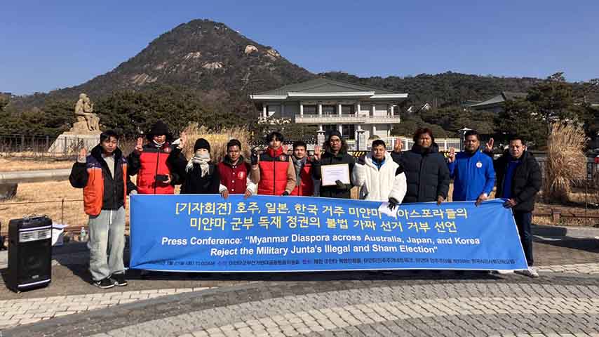 ကိုရီးယား၊ ဂျပန်၊ ဩစတြေးလျ ၃ နိုင်ငံရောက် မြန်မာနိုင်ငံသားတွေ စုပေါင်းပြီး စစ်အုပ်စုရဲ့ အတုအယောင် ရွေးကောက်ပွဲကို လုံးဝ ဆန့်ကျင်ကြောင်း ထုတ်ပြန်ပါတယ်။