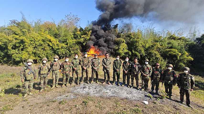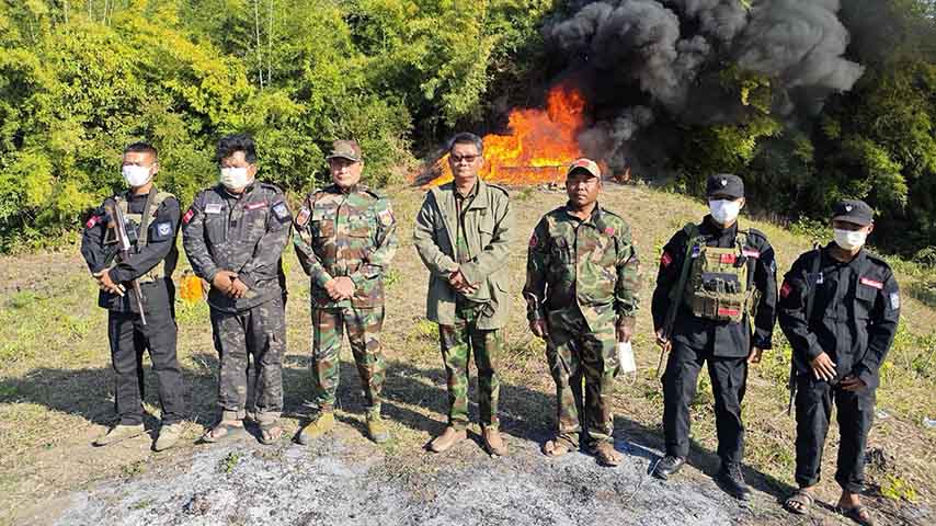 NUG အုပ်ချုပ်ရေးနယ်မြေ တနေရာမှာ ဇန်နဝါရီ ၂၅ ရက်က ဘိန်းဖြူ ၆၅၄၅ ခွက်နဲ့ WY စိတ်ကြွဆေးပြားပေါင်း ၄,၆၇၂,၀၀၀ ပြားကို မီးရှို့ဖျက်ဆီးခဲ့တာပါ။