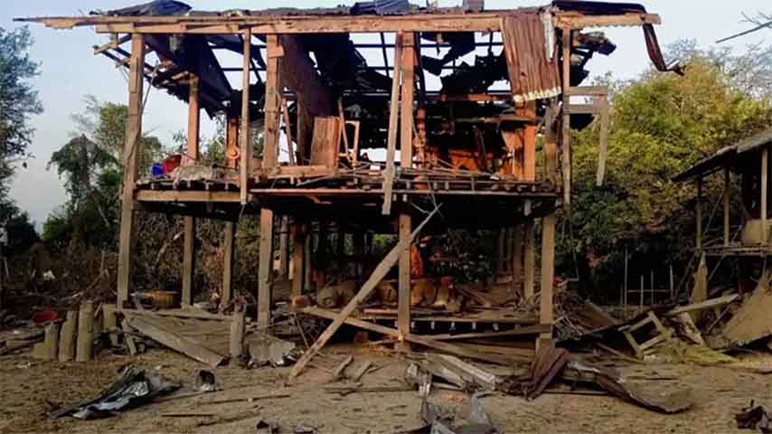 Indaw Revolution – IR ရဲ့ ပြန်ကြားရေးတာဝန်ရှိသူက “အင်းတော်မြို့နယ်ထဲမှာရှိတဲ့ မော်လူးဒေသက နမီးကျေးရွာအုပ်စု၊ လေဘိုရွာကို စစ်တပ်ကဂျက်ဖိုက်တာတွေနဲ့ ၂ ကြိမ် ပစ်ခတ်တိုက်ခိုက်ခဲ့လို့ ၃ နှစ်အရွယ်ကလေးငယ်အပါအဝင် မိသားစုလိုက် ၇ ယောက်နဲ့ ဘေးအိမ်က ၁ ယောက် စုစုပေါင်း ၈ ယောက်သေဆုံးပြီးတော့ ဒဏ်ရာရရှိသူကလည်း ၂ ယောက်ဖြစ်ပါတယ်။ လူနေအိမ်တချို့လည်း ပျက်စီးသွားပါသေးတယ်” လို့ ပြောပါတယ်။
