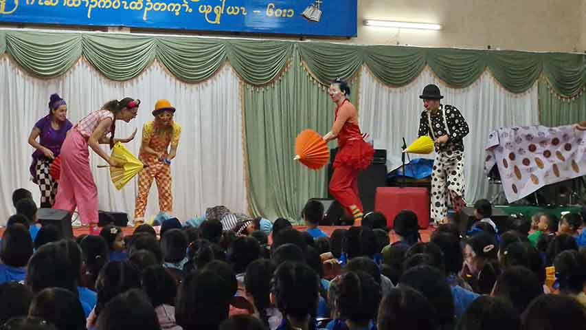 မြဝတီမြို့ တဖက်ခြမ်း မဲဆောက်မြို့နယ်မှာ ဖွင့်လှစ်ထားတဲ့ ရွေ့ပြောင်းမြန်မာ စာသင်ကျောင်းပေါင်း ၃၀ လောက်မှာ အမေရိကန်နဲ့ ဥရောပက ဆပ်ကပ်ပညာရှင်တွေက သီတင်းတပတ်ကြာ လာရောက် ဖျော်ဖြေနေတာဖြစ်ပါတယ်။