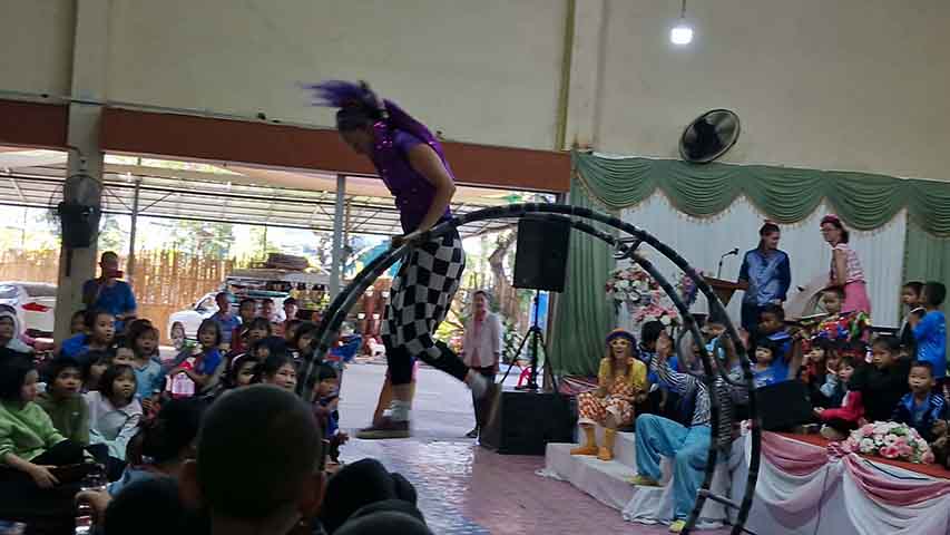 ဆာသူးလေ ကျောင်းအုပ်ဆရာမကြီး နော်ဖော်ရေက “နိုင်ငံပေါင်းစုံ အမေရိကန်၊ အင်္ဂလန်၊ ကနေဒါ နယ်သာလန် စတဲ့ နိုင်ငံပေါင်းစုံက ဆပ်ကပ်ပညာရှင်တွေက လာရောက် ဖျော်ဖြေနေကြတာပါ။ ဒီနေ့ကတော့ ကျမတို့ ဆာသူးလေမှာ ကျောင်းသား ၁,၀၀၀ ကျော်ကို ဆပ်ကပ် ပြနေပါတယ်” လို့ ပြောပြပါတယ်။