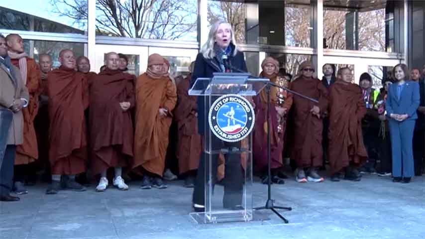 ငြိမ်းချမ်းရေးအတွက် လမ်းလျှောက်ဆရာတော်တွေကို ဗာဂျီးနီးယားမြို့တော်ဝန် စပန်ဘာဂျာက မြို့တော်ခန်းမမှာ တွေ့ဆုံခဲ့ပြီး ဖေဖော်ဝါရီ ၂ ရက်ကို ငြိမ်းချမ်း လမ်းလျှောက်နေ့လို့ ကြေညာခဲ့တာလည်း တွေ့ရပါတယ်။