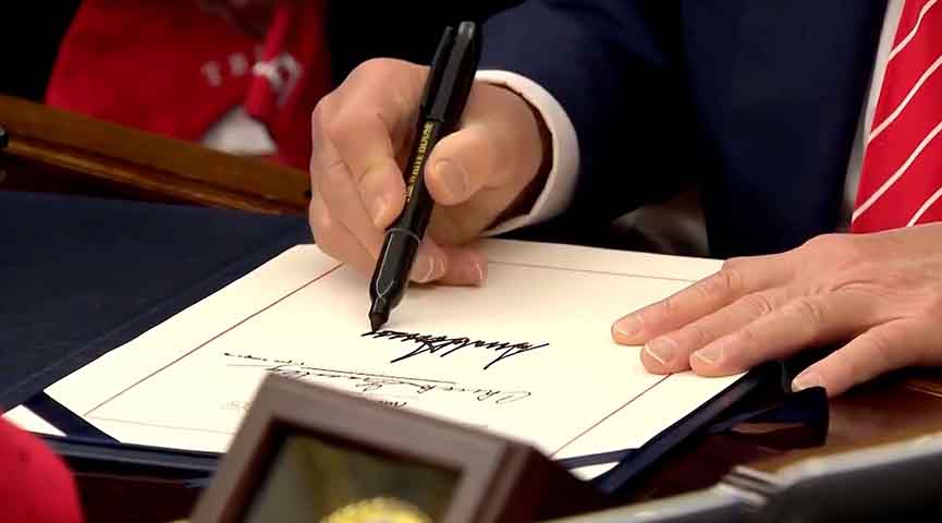 ဒေါ်လာ ၁ ဒသမ၂ ထရီလီယံ အသုံးပြုမဲ့ ၂၀၂၆ ခုနှစ်အတွက် အမေရိကန်အစိုးရ အသုံးစရိတ် ဥပဒေကြမ်းကို သမ္မတ ဒေါ်နယ်ထရမ့်ပ်က ဒေသစံတော်ချိန် ဖေဖော်ဝါရီ ၃ ရက်မှာ လက်မှတ်ရေးထိုး အတည်ပြုလိုက်တာပါ။