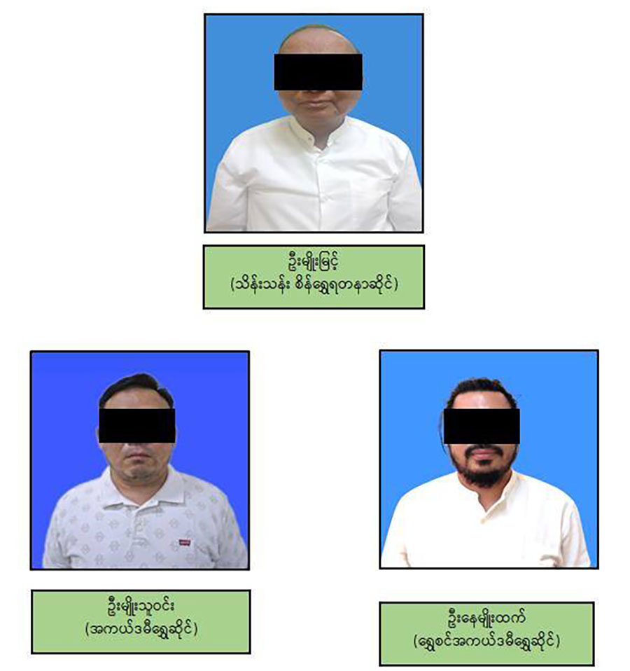 ရန်ကုန်တိုင်း ရွှေလုပ်ငန်းရှင်များအသင်းရဲ့ ဥက္ကဋ္ဌ ဦးမျိုးမြင့် (သိန်းသန်း စိန်ရွှေရတနာဆိုင်)၊ ဒုတိယဥက္ကဋ္ဌ ၁ ဦးမျိုးသူဝင်း (အကယ်ဒမီရွှေဆိုင်) နဲ့ အတွင်းရေးမှူး ဦးနေမျိုးထက် (ရွှေစင်အကယ်ဒမီရွှေဆိုင်) တို့ဟာ ရွှေဈေးနှုန်းတည်ငြိမ်စေရေးအတွက် ကြပ်မတ်ထိန်းသိမ်းဖို့ တာဝန်ရှိသူတွေဖြစ်ပေမဲ့ သူတို့ကိုယ်တိုင်က ရွှေဈေးကွက်မတည်မငြိမ်ဖြစ်အောင် ရည်ရွယ်ပြီး ပြင်ပရွှေပေါက်ဈေးနှုန်းနဲ့ ရွှေတုံးရွှေခဲတွေ ဝယ်ယူသိုလှောင်တာ၊ ရောင်းဝယ်တာတို့ကို တွေ့ရှိရတယ်လို့ စစ်ကောင်စီထုတ်ပြန်ချက်မှာ ဖော်ပြပါတယ်။