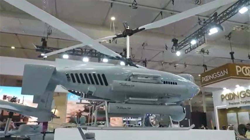 Golden Eagle CR500B မောင်းသူမဲ့ တိုက်ခိုက်၊ ထောက်လှမ်းရေး ရဟတ်ယာဉ်ကို ပြပွဲရဲ့ အလယ်ဗဟိုမှာ ထင်ထင်ရှားရှား ပြထားခဲ့ပါတယ်။