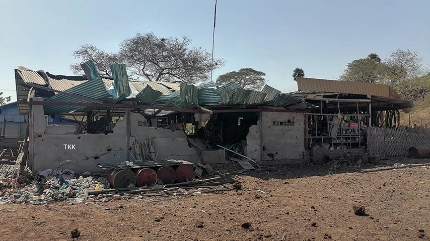 “မြင့်စိုင်းလမ်းဆုံက ကုန်မာဆိုင်ကြီးပေါ်ကို ကြဲချသွားတာ။ ဘာစစ် ကြောင်းမှမရှိဘူးနော်။ ဆိုင်ကလည်း သံထည်ပစ္စည်းတွေ၊ ကားပစ္စည်းနဲ့ စက်ပစ္စည်းတွေပဲ ရောင်းတာ။ အဲဒါကို အကြောင်းမဲ့သက်သက် ကြဲချသွားတာ။ အဆောက်ဦတော့ ပျက်စီးတယ်။ လူတွေကတော့ ကြိုတင်ပြင်ဆင်ချိန်ရလို့ အထိခိုက်မရှိခဲ့ဘူး” လို့ ရွာသားတယောက်က ပြောပါတယ်။