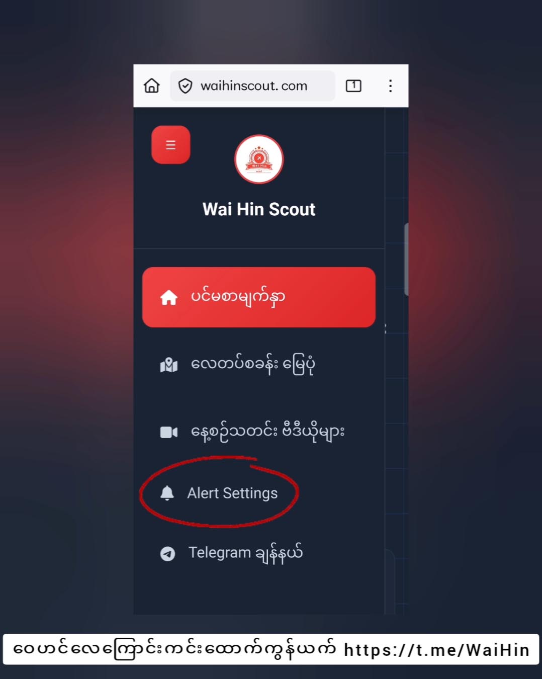 ဖုန်းအက်ပလီကေးရှင်းအနေနဲ့မဟုတ်ဘဲ ဝက်ဘ်ဆိုက်ထဲမှာပြုလုပ်ရတာဖြစ်ပြီး အင်တာနက် Browser တခုခုကနေ www.waihinscout.com ကို ဝင်ရမှာဖြစ်ပါတယ်။