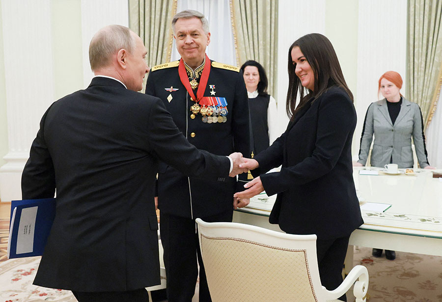 ရုရှားသမ္မတ ဗလာဒီမာပူတင်က ယူကရိန်းနိုင်ငံမှာ ကျဆုံးသွားတဲ့ ရုရှားစစ်မှုထမ်းတွေရဲ့ မိသားစုဝင်တွေနဲ့ ဖေဖော်ဝါရီ ၂၃ ရက်မှာ တွေ့ဆုံခဲ့ပါတယ်။