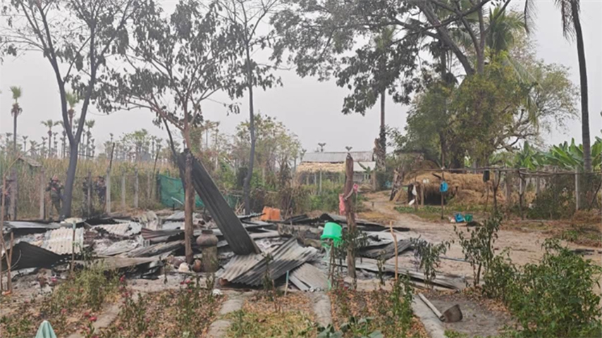 စစ်ကောင်စီတပ်ဖွဲ့ဝင်တွေ မီးရှို့ဖျက်ဆီးသွားတာကြောင့် ပြည်သူပိုင်နေအိမ် ၅ လုံး၊ ဆိုင်ခန်းနဲ့တွဲလျက် ဖွင့်လှစ်ထားတဲ့ နေအိမ် ၂ လုံးနဲ့ ဆန်စက်အကြီး ၂ လုံးတို့ မီးလောင် ပျက်စီးခဲ့တယ်လို့လည်း သိရပါတယ်။