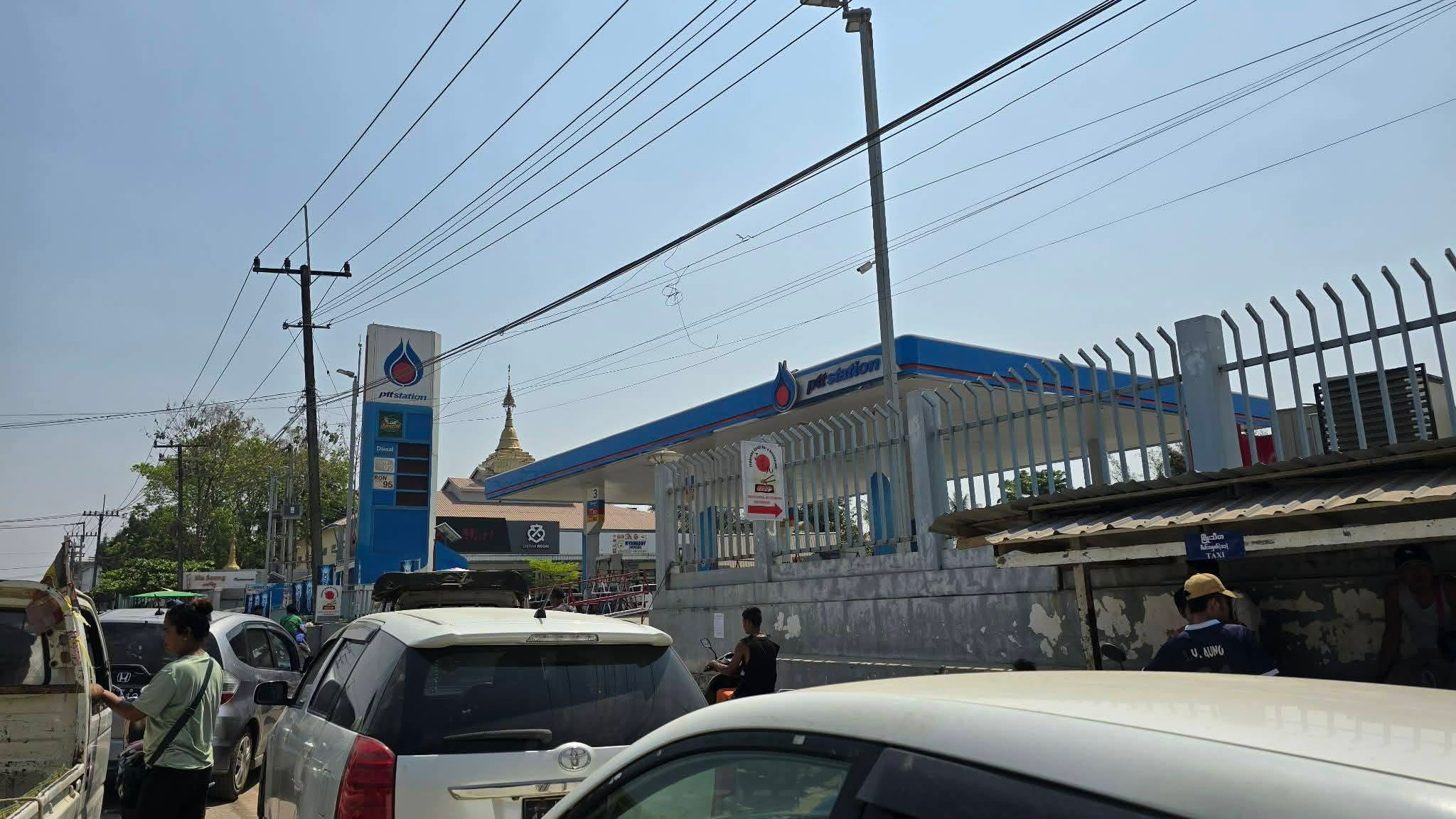 ထိုင်း-မြန်မာနယ်စပ် မယ်ဆိုင်မြို့မှာ မတ် ၂ ရက် မနက်ကစ မြန်မာဘက်ခြမ်း တာချီလိတ်ကလူတွေ လာရောက်တန်းစီဝယ်ယူတာကြောင့် ညနေ ၆ နာရီလောက်က မယ်ဆိုင်ဓာတ်ဆီဆိုင်မှာ ဆီကုန်သွားတယ်။ ဒီကနေ့ မတ် ၃ ရက် မနက်မှာလည်း မနက် ၆ နာရီကတည်းက လာဝယ်ကြတာ ဓာတ်ဆီဆိုင်မှာ တော်တော်စည်ကားနေတယ်လို့ မယ်ဆိုင်ဒေသခံက ချနယ်လ် ၇ ထိုင်းသတင်းဌာနကို ပြောပါတယ်။
