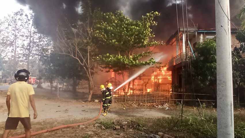 အဲဒီမီးလောင်မှု ၂ ခုကို ညနေ ၇ နာရီခွဲဝန်းကျင်မှာ ဒေသခံကျေးရွာသားတွေ၊ မီးသတ်တပ်ဖွဲ့ဝင်တွေနဲ့ ဒေသအုပ်ချုပ်ရေးဌာနက ဝန်ထမ်းတွေ စုပေါင်းပြီး ငြှိမ်းသတ်နိုင်ခဲ့တယ်လို့လည်း သိရပါတယ်။